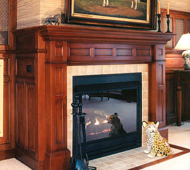 Detail, glazed mahogany fireplace